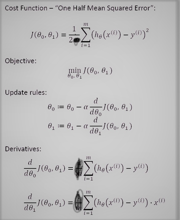 # my cost function or error is (1/2)*(sigma [(hx-yi)**2] )