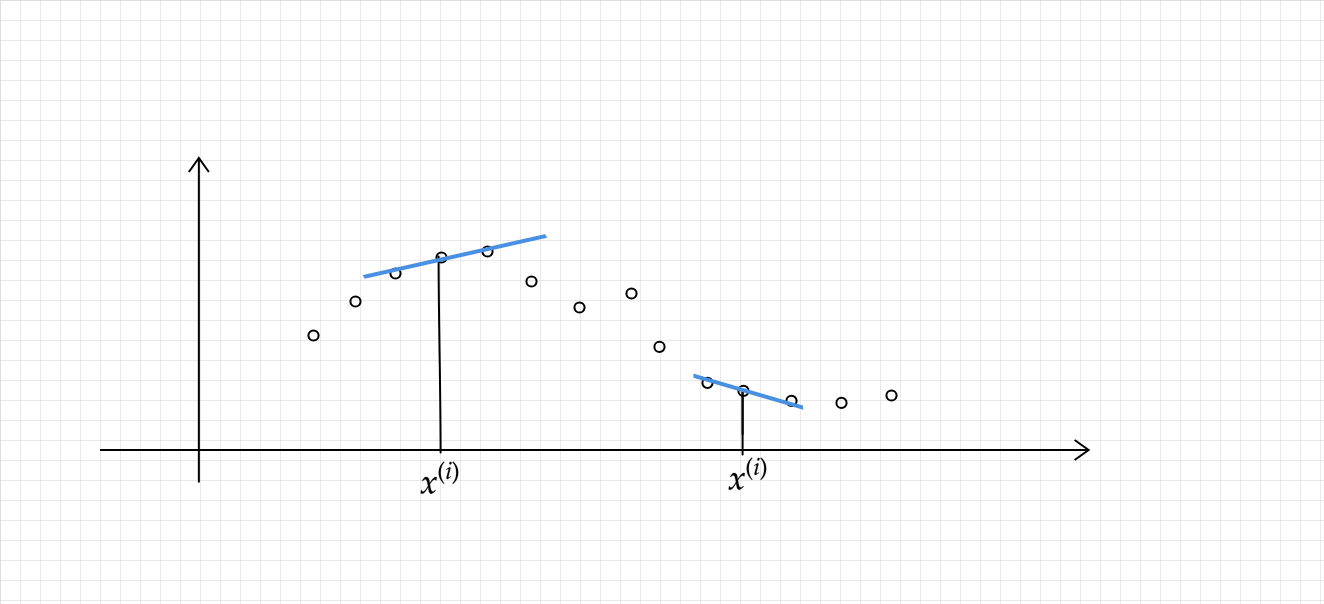 - finding the line such that parameters got more affected more by points in locality than those far away.