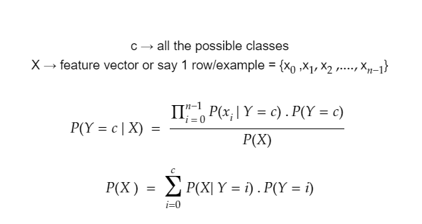 - then P(X|Y) = P(x1,x2,x3,..,xn|Y) = P(x1|Y)P(x2|Y)P(x3|Y).....P(xn|Y)