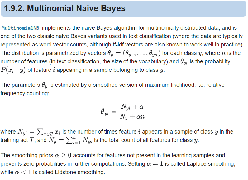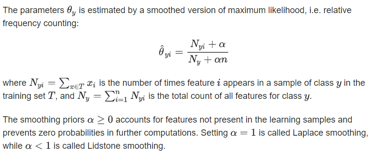 MultinomialNB(alpha=1.0, class_prior=None, fit_prior=True)